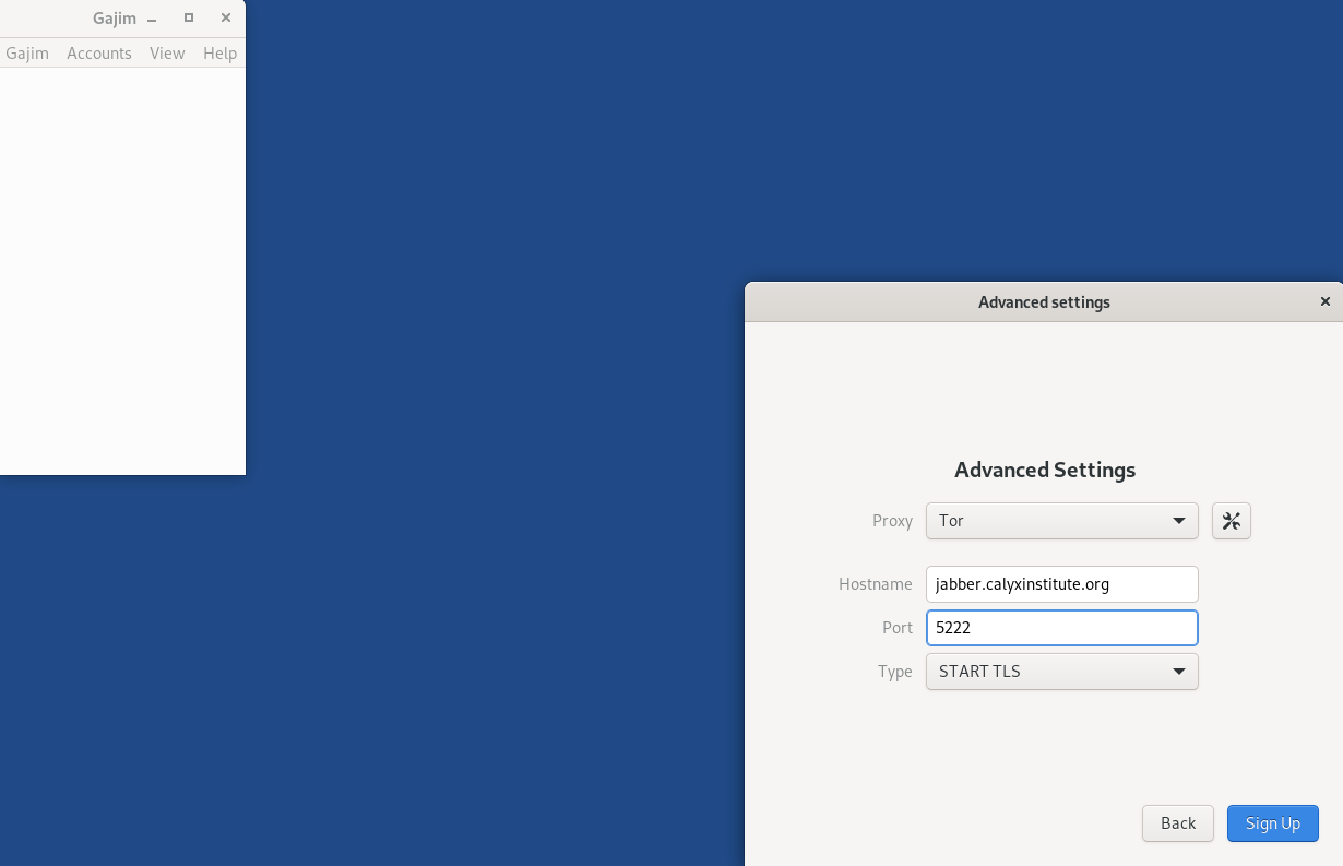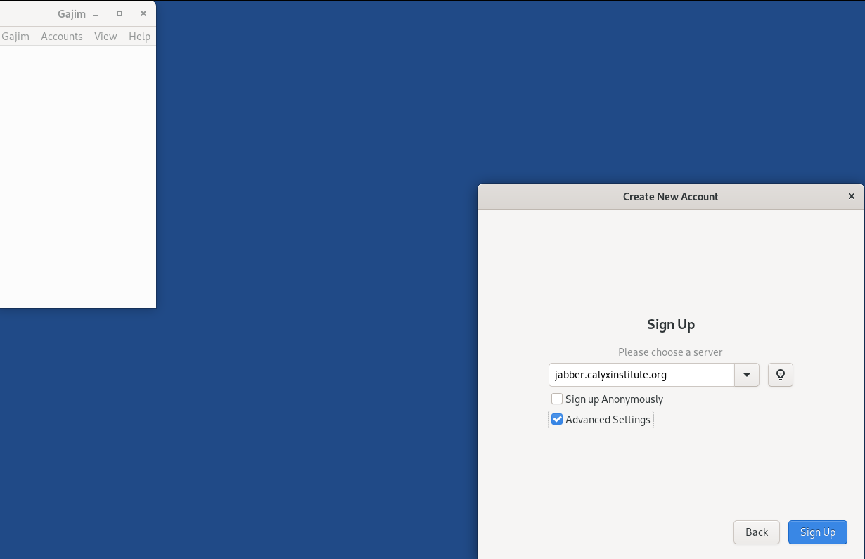 Enter jabber.calyxinstitute.org check advanced settings, and click signup
