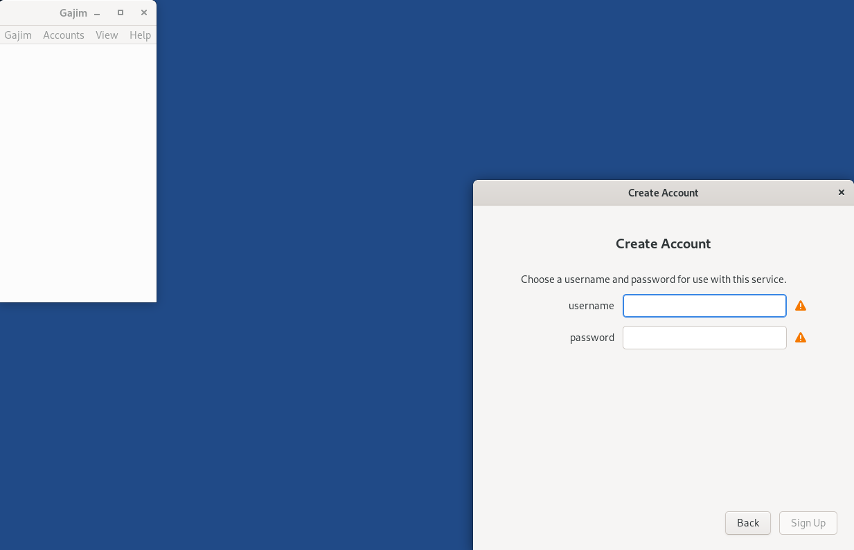 Open Gajim on the welcome screen click Sign Up