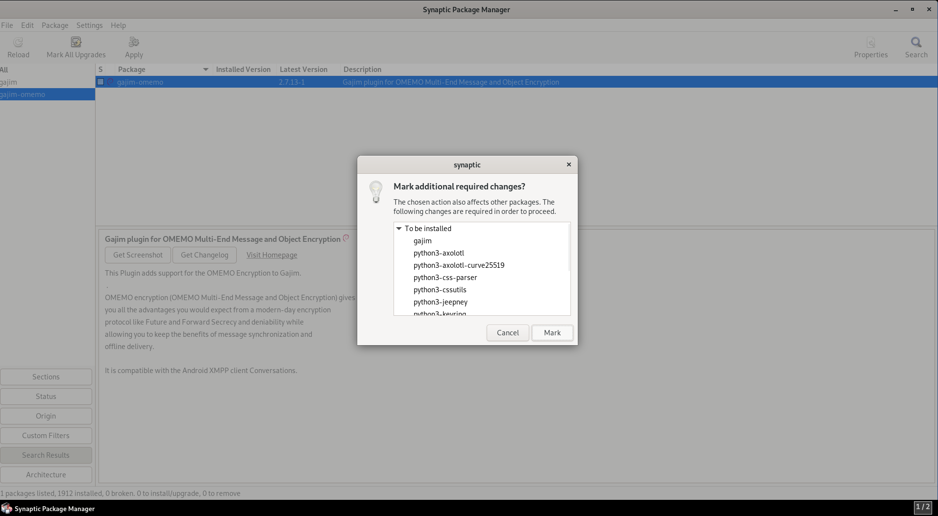 Double click gajim-omemo and mark it to be installed