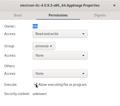 Now right click the App Image file -> Properties -> Permissions and check the box that says Allow executing file as program and close.