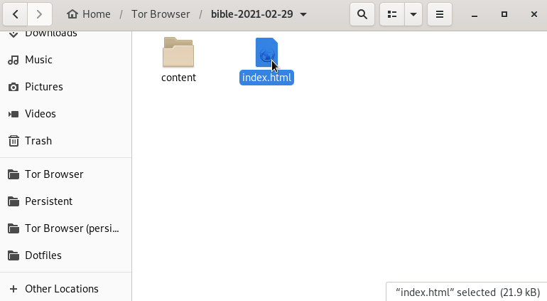 Once you have the contents extracted open the extracted bible folder click index.html and you can now read the bible offline in the browser of your choice!