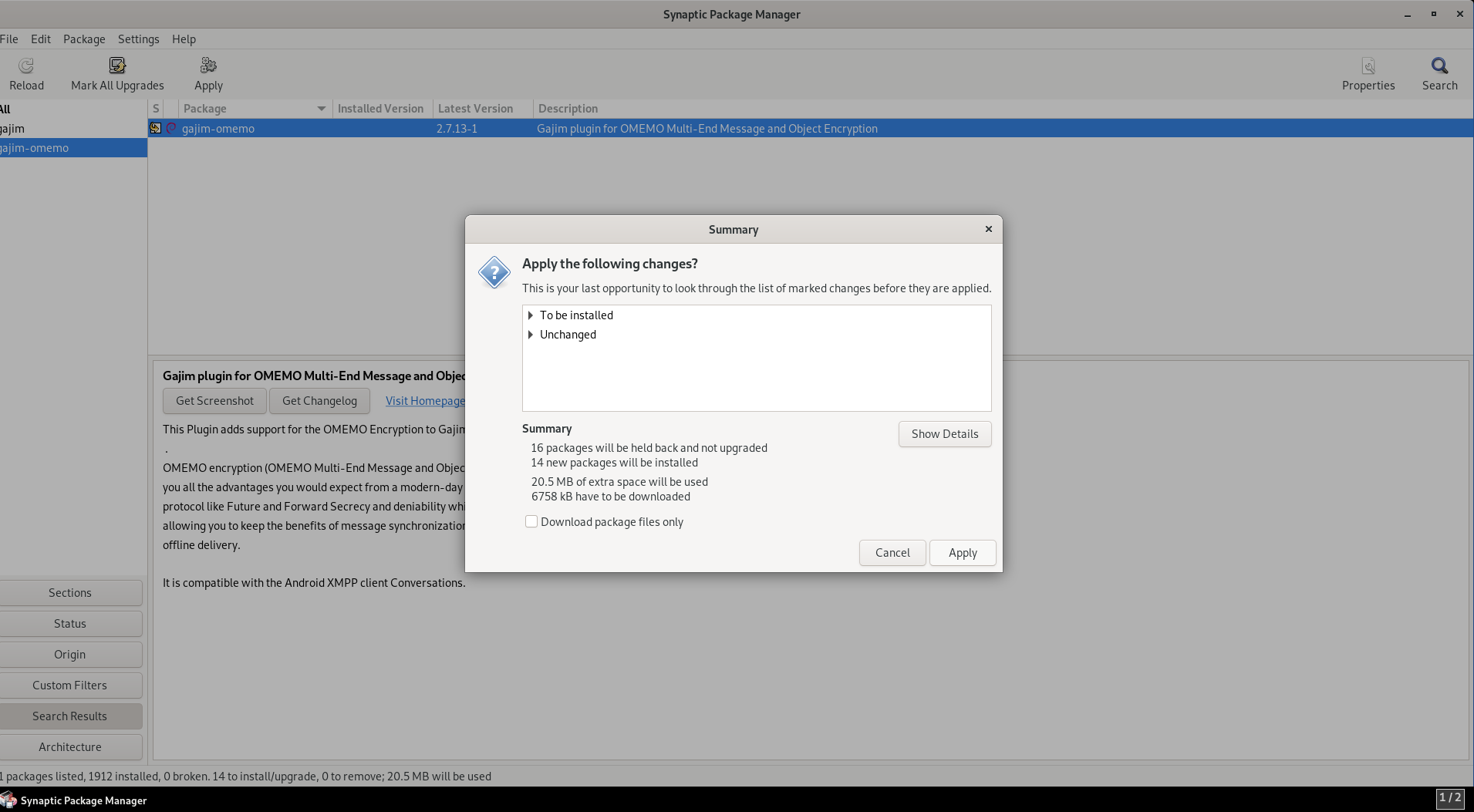 Double click gajim-omemo and mark it to be installed