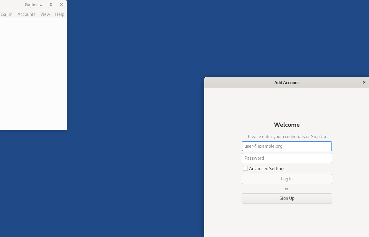 Open Gajim on the welcome screen click Sign Up